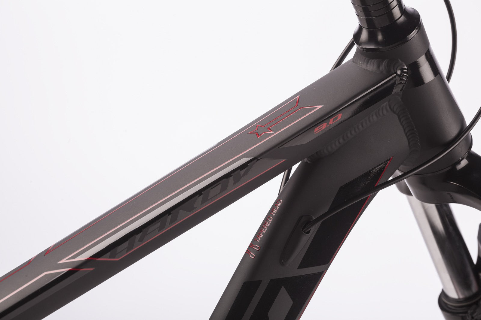 The Hardy 9.0 frame is made from 6061 and hydro formed tubes with comfort, reliability and light weight in mind. The geometry is confidence inspiring on all terrains. Hardy is made in four sizes: M, L, XL are with 29″ and S is with 27.5″ wheels. The bike is equipped with SR Suntour XCM fork with 100mm travel, that will smoothen out the bumps and give you better control. The powerful hydraulic disk brakes Shimano МТ200 will give you the confidence that you can stop anytime on any terrain. Shimano Alivio 3×9 will give you a wide range of gears for wide range of terrains.